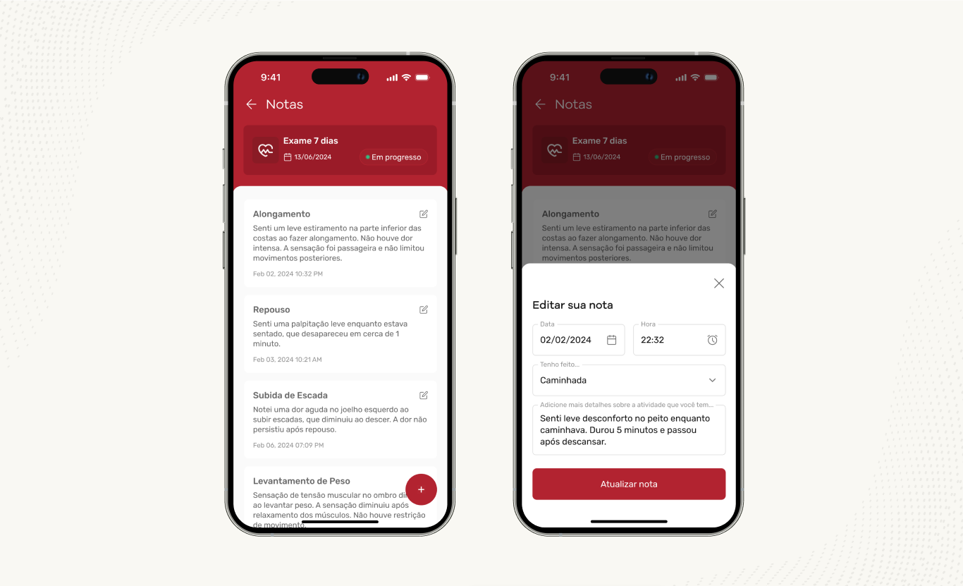 - Notas em evidência: seção mais clara e espaçada, que favorece registros consistentes.